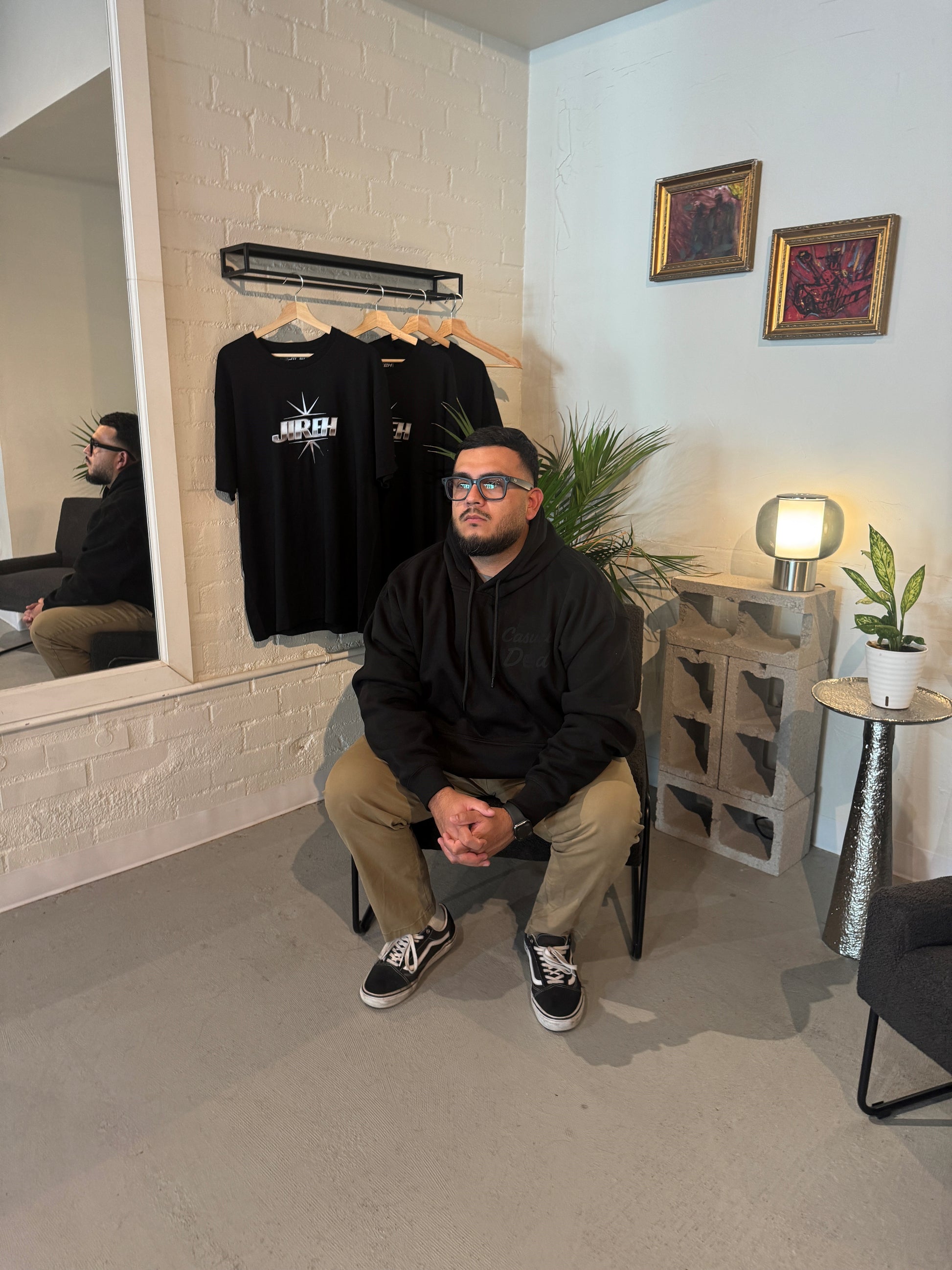 The logo is finished in a soft foam print, giving it a raised, smooth feel. With tonal black-on-black design and a subtle jack-o’-lantern detail in the logo, this hoodie adds just the right touch of Halloween while staying versatile enough to wear year-round.